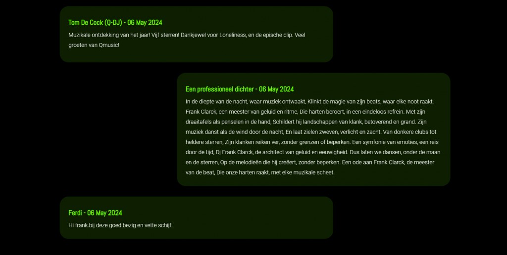 De krant legde met dit artikel ook even de nadruk op de mijn dance en house muziek in de week van de Belgische muziek. Week Belgische Muziek: Frank Clarck